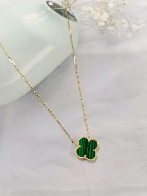 Sterling Silver Malachite Clover Dainty Initials Necklace