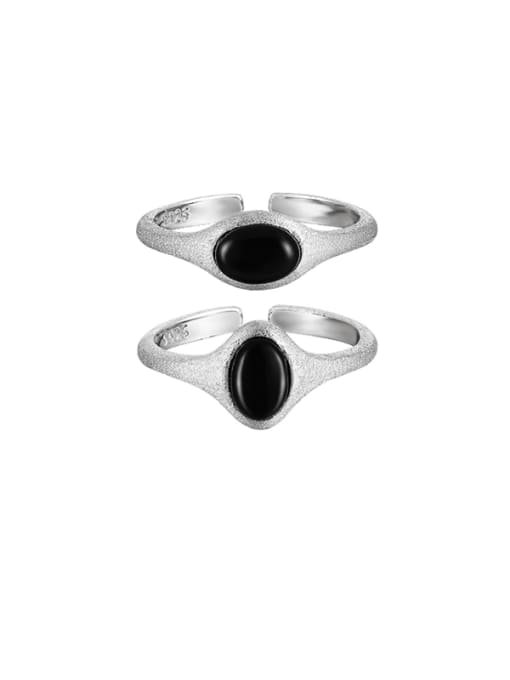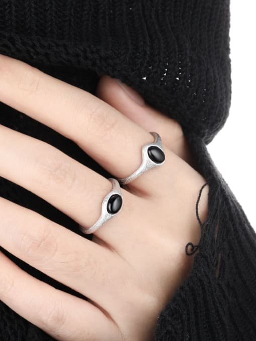Sterling Silver Obsidian Geometric Vintage Band Ring
